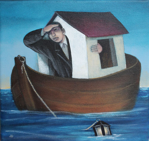 Houseboat 8x8in, acrylic on canvas, £450